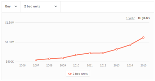 (悉尼十年两房公寓走势图)